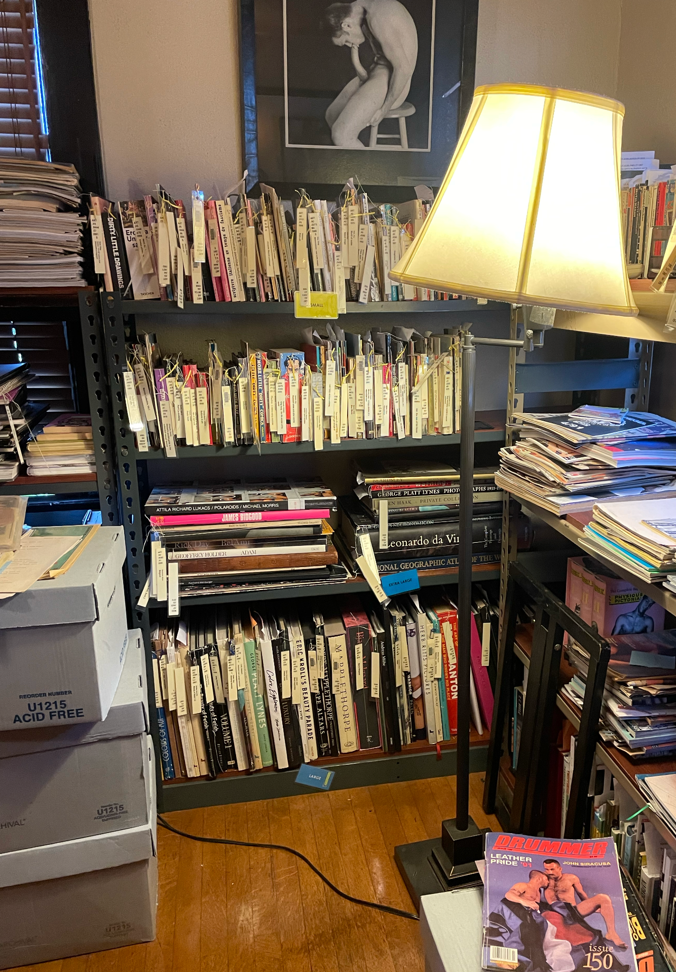Because we are married and work together in such a collaborative way, Asa knew what the project was from the beginning. He looked at all the collages as they were coming together, and even had to spend a few weeks living with thousands of images spread out all over our living room. I also use him as a resource to bounce thoughts back and forth, and to translate my visual and conceptual ideas into writing. But when it came to writing the essay, he took inspiration from what I had been thinking about and discussing with him and then expanded on that based somewhat on his own interests. There is also a reflection of our relationship in there, to how we relate to our own bodies, sex, and intimacy, because we are both trans men, so we have intertwining interests in masculinity, homosexuality, plurality, and different kinds of extensions of the body.