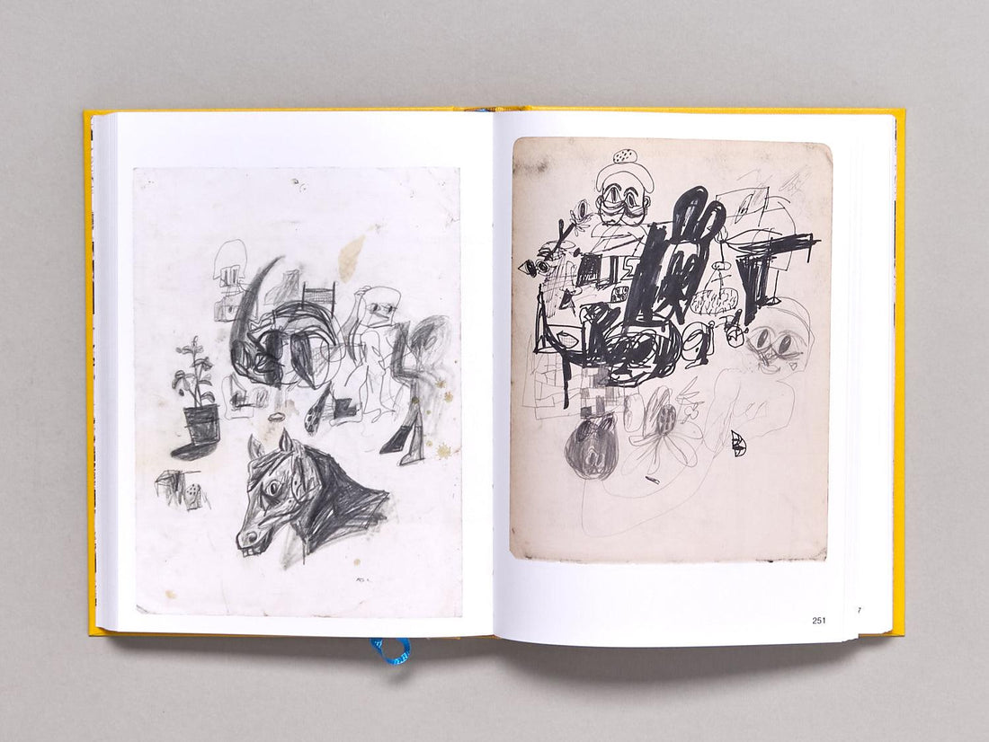 Extra Drawings is an epic ride trough 18 years of Eddie Martinez's relentless drawing practice. Sleepers, birds, flowers, blockheads, Fran the dog, Nature morte, tabletops, buflies, mandalas and Raid cans are some of the artist's recurring motifs, which are taken on a morphing journey throughout this new book. A conversation between Martinez and Claire Gilman, Chief Curator at the Drawing Center in New York City digs deeper into the intricacies of the artist’s fearless approach to the white page. This publication is the third and last chapter of the Drawings trilogy.