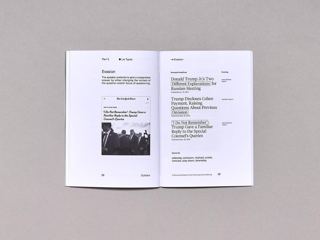 In "Outliars," Angie Waller examines the role of click-friendly headlines in amplifying misinformation during the Trump administration, using data from a 28-year archive of The New York Times. Connecting the themes of outliers and liars, the book depicts the heightened media coverage of Trump relative to past US presidential administrations and the impact technologies such as search engine optimization and headline A/B testing may have on this phenomenon. The book annotates headlines in a manner suited for an algorithmic lie detector, highlighting the futility of filtering out the noise amongst ambiguous headlines.