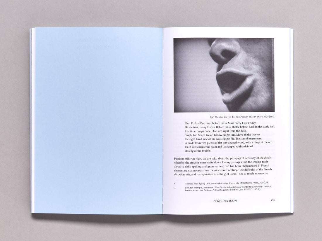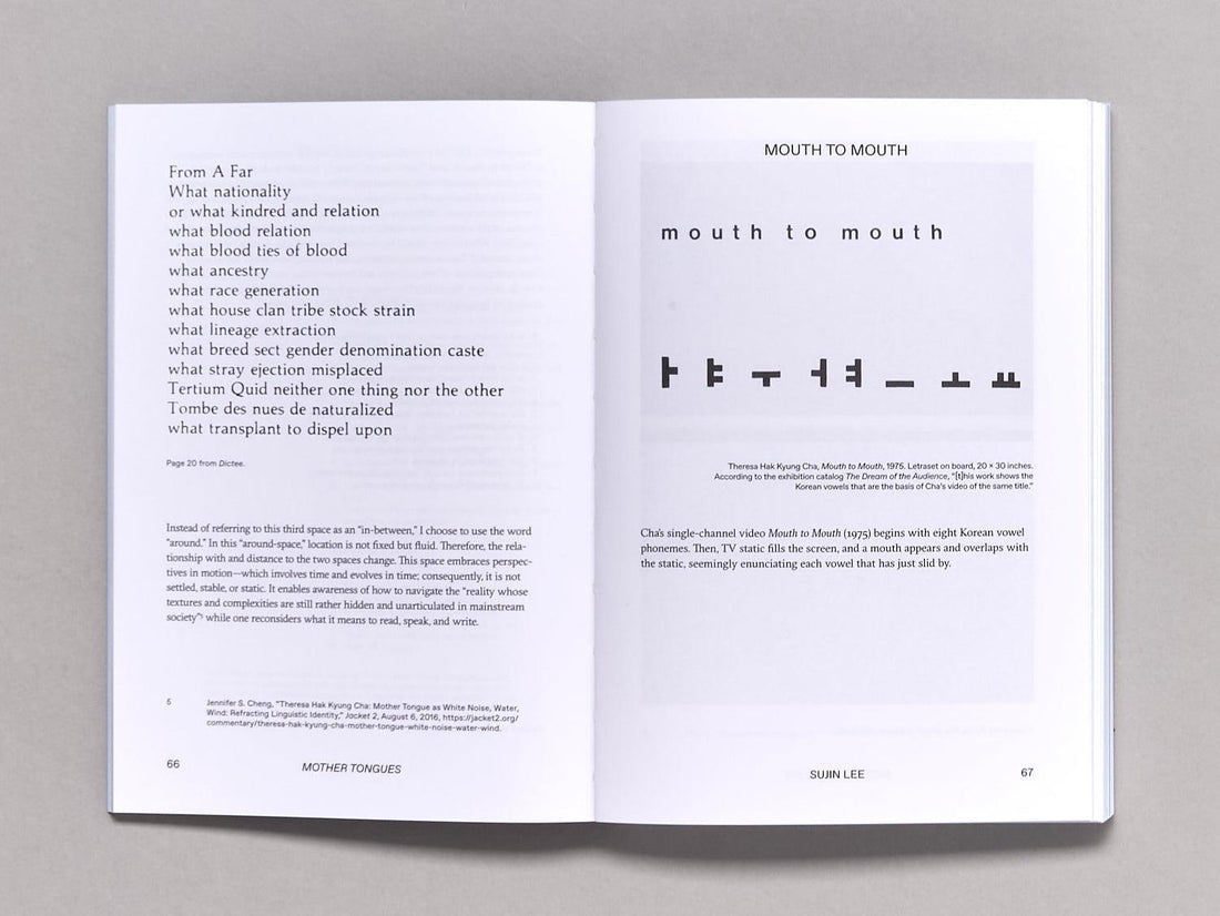 She Follows No Progression reflects on the plurality of Theresa Hak Kyung Cha (1951–1982)’s work and legacy, collecting essays, personal narratives, poems, conversations, letters, and the extratextual in a reader that attests to Cha’s genre-bending vision and political imagination. The writers, artists, scholars, organizers, and educators collected here, each unique in their voice and method, multiply approaches to language, colonial history, migration, and time in dialogue with Cha’s unequivocally interdisciplinary practice. Their contributions traverse subjects from Asian American studies to literary history, translation, film theory, and experimental poetics, while attending to the gaps between these fields and the intractable entanglements of race, class, and gender that underlie them. She Follows No Progression echoes Cha’s appeal for a liberatory horizon emergent from all that we are affixed to in the present. She Follows No Progression is published on the occasion of the 2022 program, The Quick and the Dead: Theresa Hak Kyung Cha Edition. The Quick and the Dead is a yearlong, multiphase project that highlights the life, work, and legacy of a deceased writer by bridging their work to that of contemporary practitioners. In its third year, the program focused on Theresa Hak Kyung Cha. Contributors: Sam Cha, Marian Chudnovsky, Jesse Chun, Una Chung, Anton Haugen, Irene Hsu, Valentina Jager, Juwon Jun, Youbin Kang, Eunsong Kim, Youna Kwak, Jennifer Kwon Dobbs, Andrew Yong Hoon Lee, Jennifer Gayoung Lee, Sujin Lee, Florence Li, Serubiri Moses, Jed Munson, Yves Tong Nguyen, Wirunwan Victoria Pitaktong, Brandon Shimoda, Caterina Stamou, Megan Sungyoon, Teline Trần, and Soyoung Yoon.
