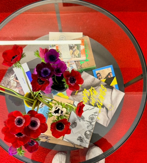 We keep all the first copies of all of our publications on the bottom of this little Ikea coffee table in our office.