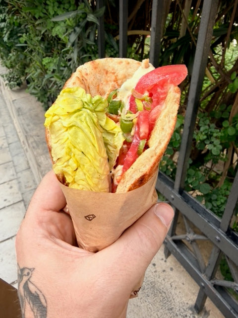 Time for lunch, after going to the bank (in Greece it’s still very much a thing to have to go to the bank), I grab a perfect chicken gyro sandwich from this little place Hoocut around the corner from the shop. It’s the combination of the chopped spiced meat, with the tomato and lettuce and (essential) mayo/mustard sauce…and something about eating while walking. I like to pretend there are no calories in foods eaten while walking.