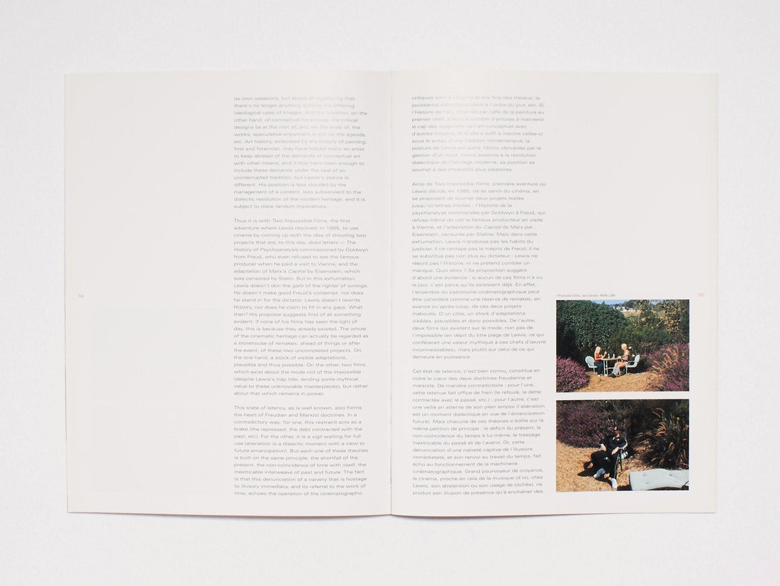 Extensively illustrated and featuring essays by Steven Bode, David Turnbull and Jean-Pierre Rehm, the book was published to accompany two large-scale exhibitions of Lewis’s work that took place at MOMA, Oxford in 2001 and at Villa Arson in Nice in 2001/2002.